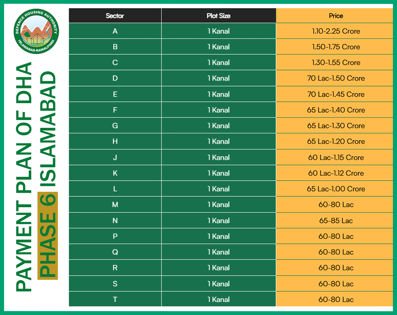 All prices include applicable DHA charges and government taxes for filers. Special terms are available for corner plots and non-filers.